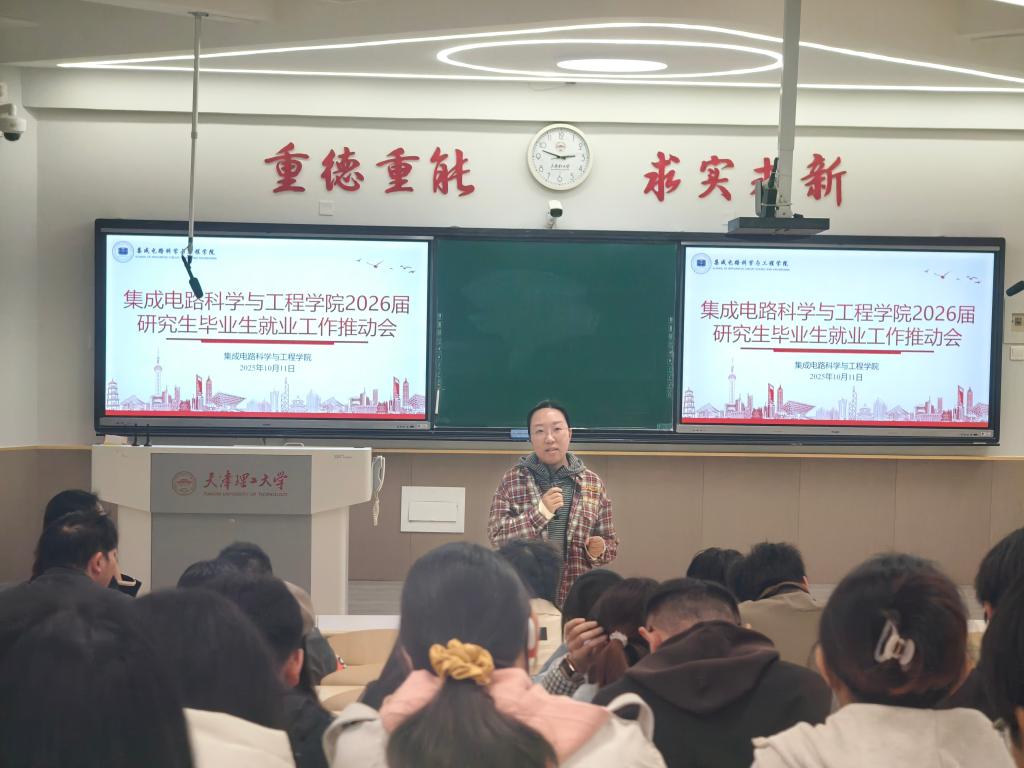 为积极应对当前就业形势,精准服务研究生就业需求,10月11日下午,3044am永利官网召开2026届研究生就业推动会。学院副院长杨正春教授、党委副书记陈秀君老师、研究生辅导员、特邀嘉宾天津国家“芯火”双创平台指导老师及毕业班研究生参加此次会议。