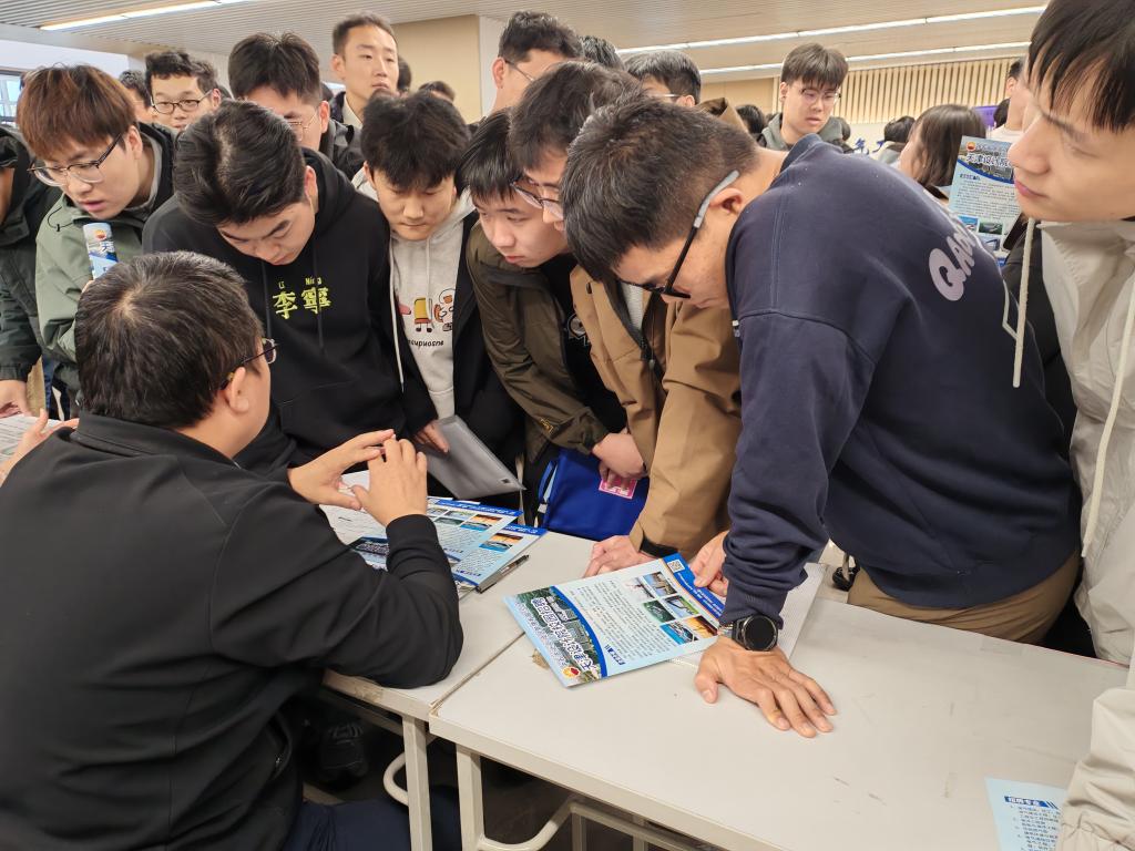 双选会现场,本次双选会设立“求职加油站”功能区,为毕业生开展应征入伍、西部计划、基层就业等政策咨询,进一步提升就业服务精准度。双选会现场秩序井然、气氛热烈。毕业生们围绕工作内容、招聘流程、培养机制与发展路径等重点问题与用人单位深入交流;非毕业年级同学们也积极到场了解行业趋势与岗位能力要求,为职业规划做好准备。